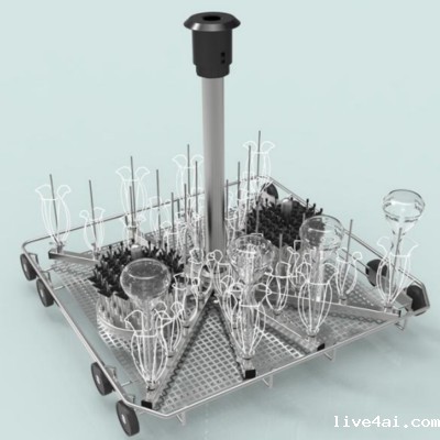 适用清洗试管、量筒、锥形瓶、球形瓶等,固定配备36支清洗柱,清洗柱有3种高度,分别为140mm,200mm,240mm;